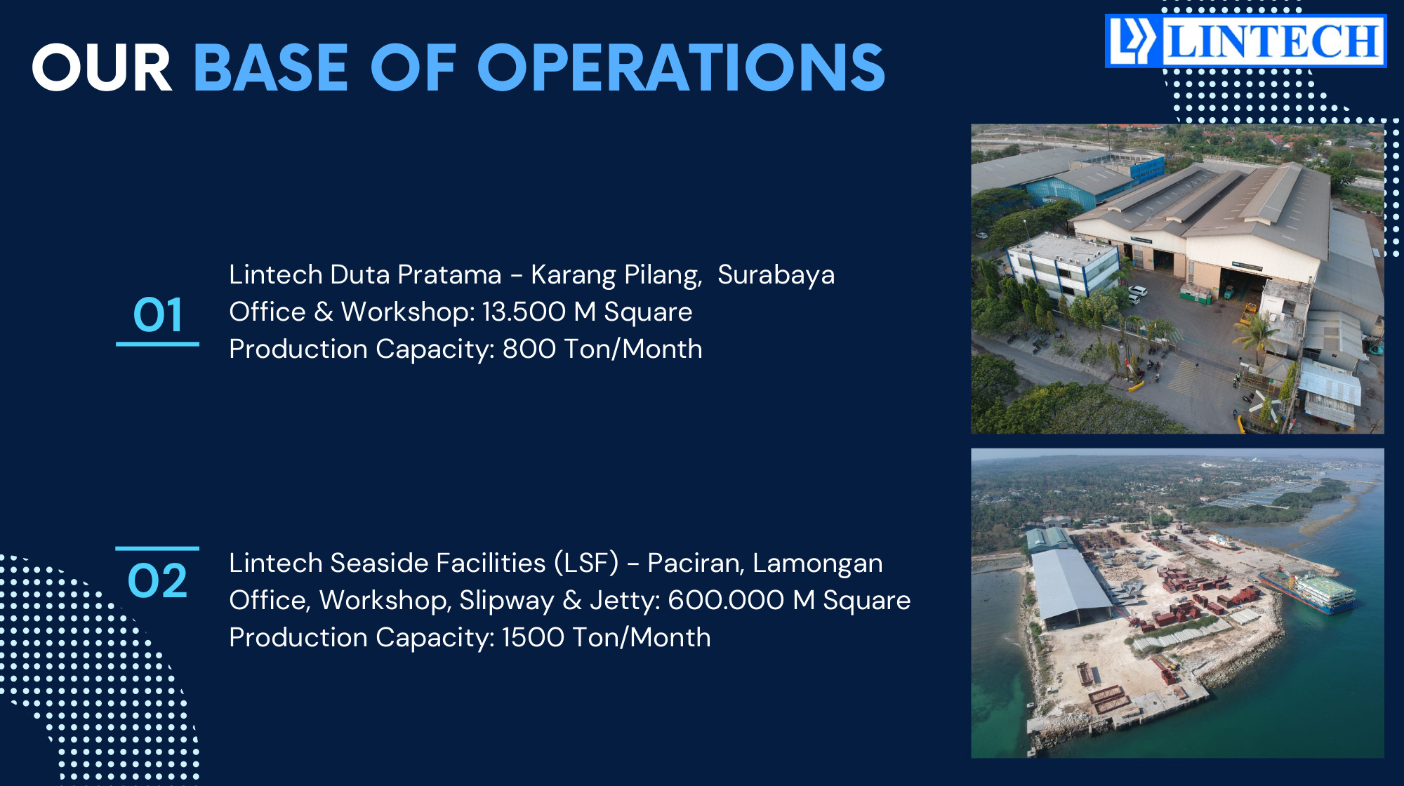 Our new facility at PACIRAN – Lamongan (LSF-Lintech Sea Side Facility) is specially designed for pre-fabricated pipes and structure, platform, jacket and other giant